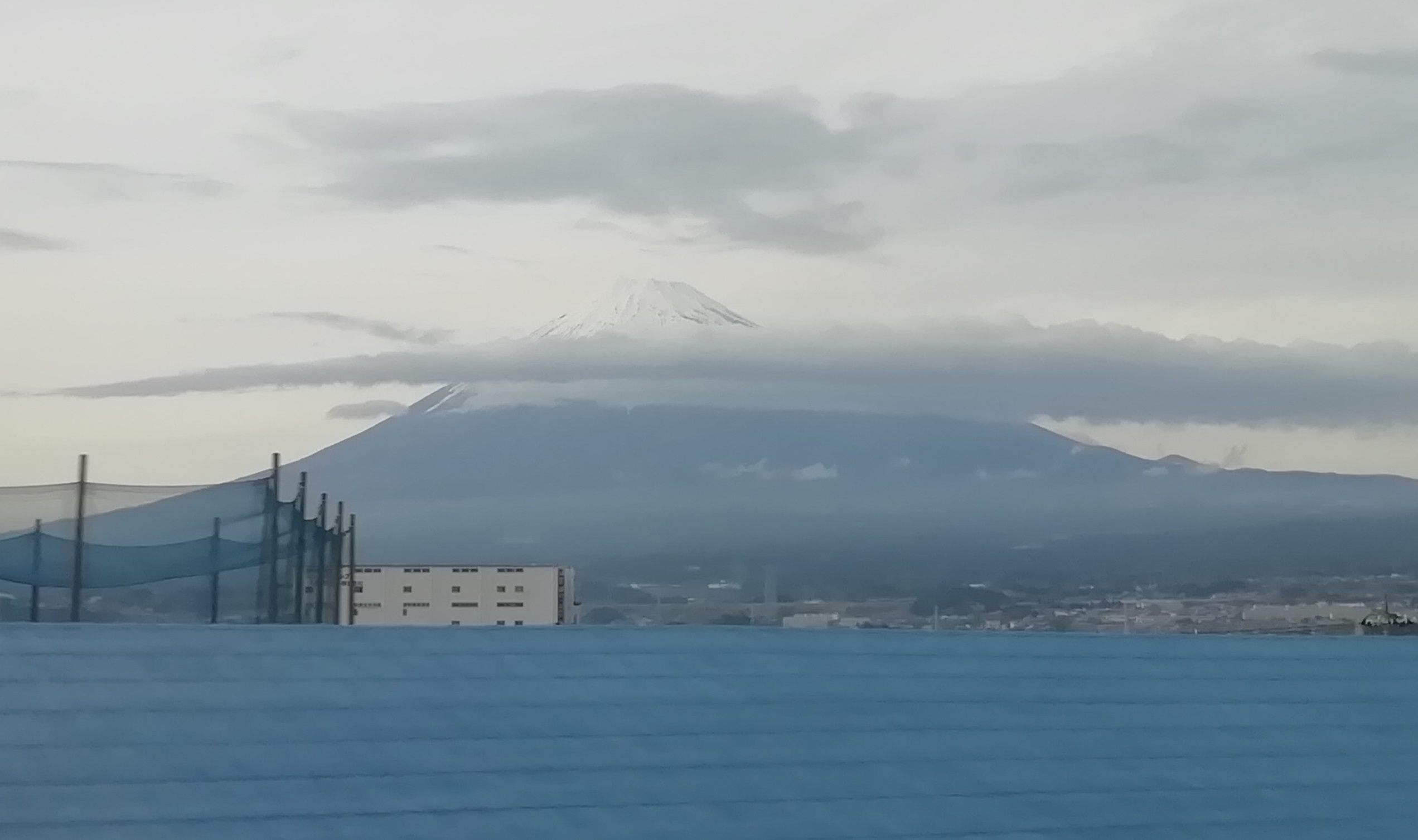 名古屋に日帰り出張した。帰り富士山が見えた。写真の富士山の手前は海ではありません。