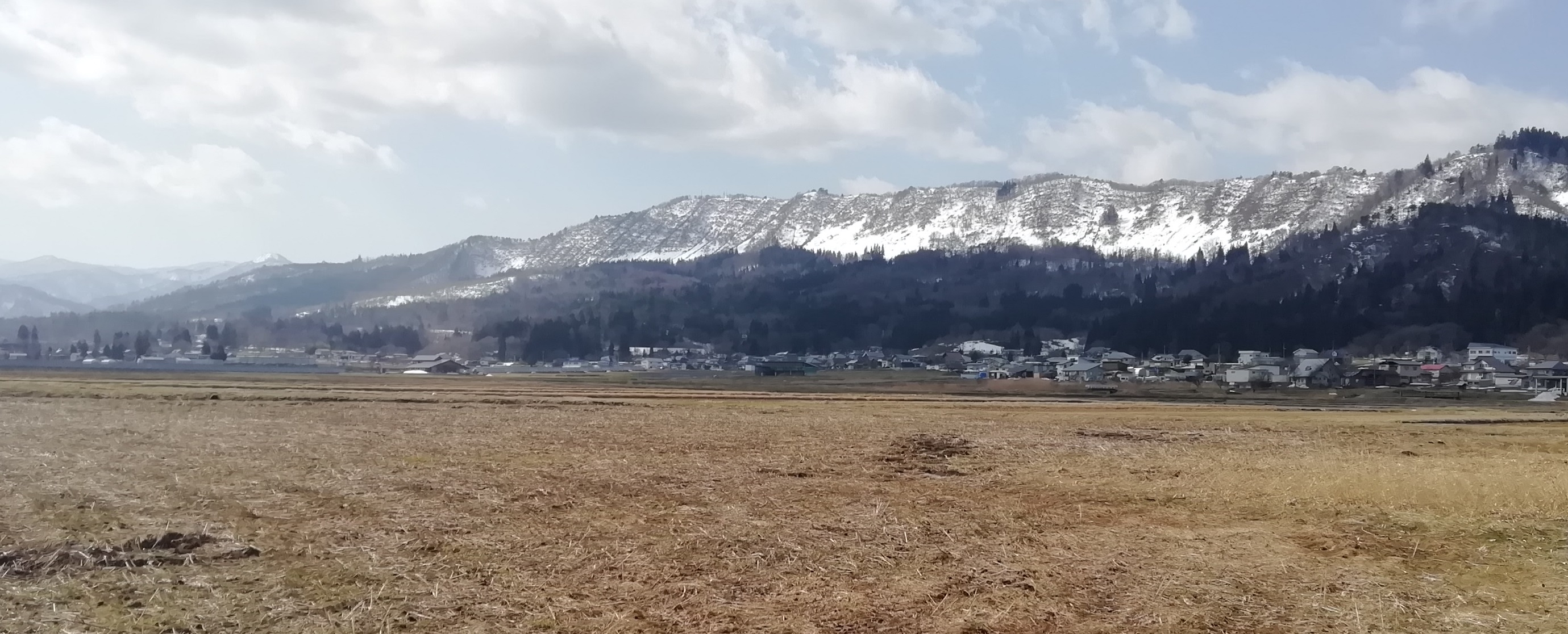 2024.3.28(自宅付近から朝日岳を望む。約45km)。とてもよく晴れた朝だった。(→写真ときどき日記)